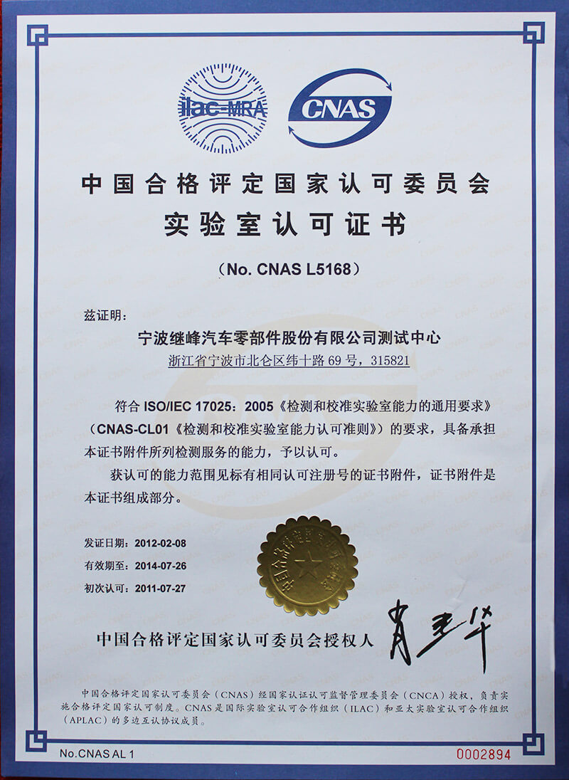 公司实验室通过国家认可委ISO17025国家实验室认可;