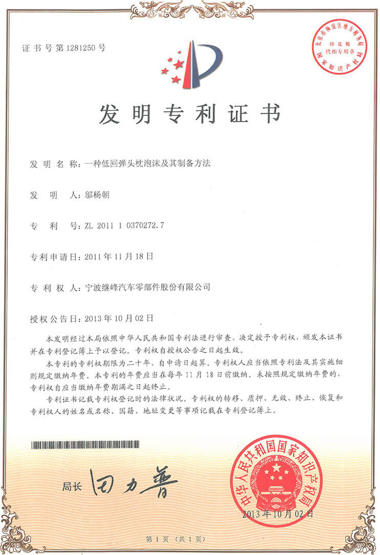 公司与一汽-大众同步研发睡眠头枕,并实现量产,该项目成为公司当年销售额过亿的最大项目;