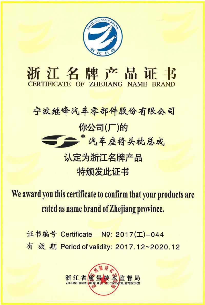 公司产品荣获“浙江名牌产品”荣誉称号;
