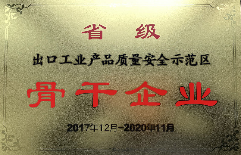 公司荣获“省级出口工业产品质量安全示范区骨干企业”荣誉称号;