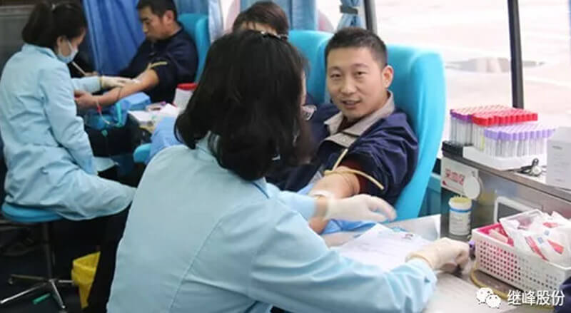 2017-12-28长期以来,继峰在稳健经营、快速发展的同时,勇于承担社会责任,积极鼓励员工参加环境保护、扶贫帮困等系列社会公益活动,致力于做一家有温度、有态度的卓越企业。11月底,北仑区献血办对区内企业发起无偿献血的倡议,借着这个契机,公司于12月1日组织开展员工无偿献血活动